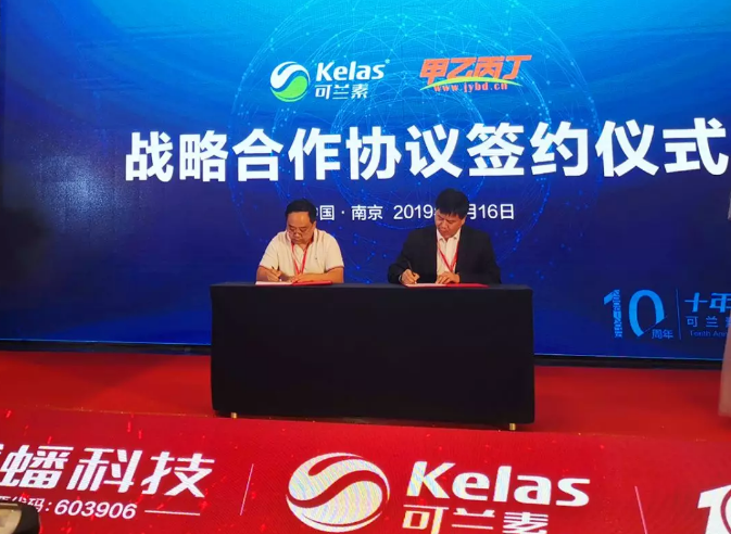 本次庆典中,甲乙丙丁网CEO阮成瑜和龙蟠集团副总裁兼可兰素总经理秦建进行了签约仪式,正式开启两家企业的全面合作。